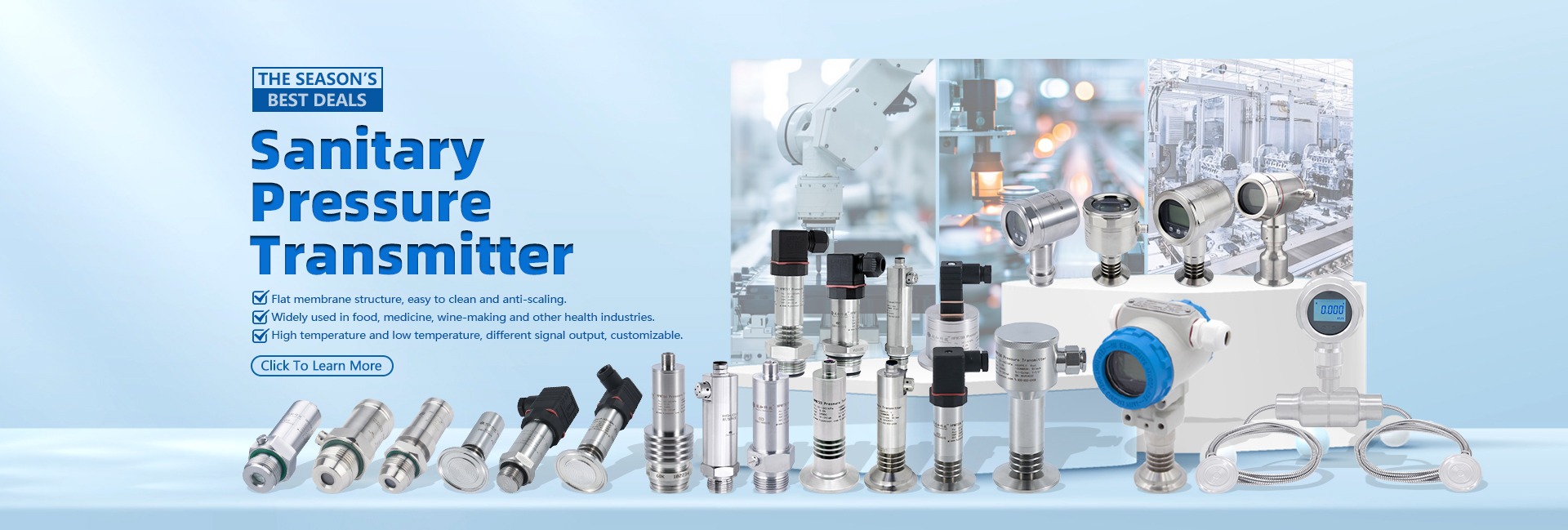 Productos principales:Sensor de presión, transmisor de presión, transmisor de temperatura, sensor de temperatura, interruptor de flujo